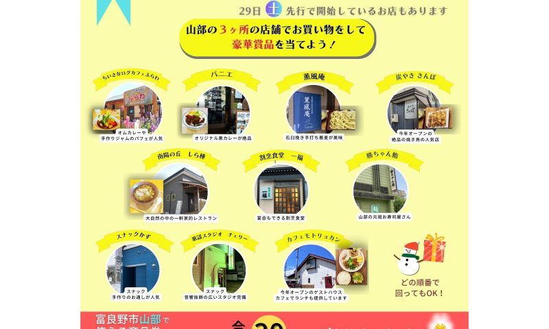 抽選で、山部でも使える「ふらの市内共通商品券」や特産品が、合計30名様に当たります!