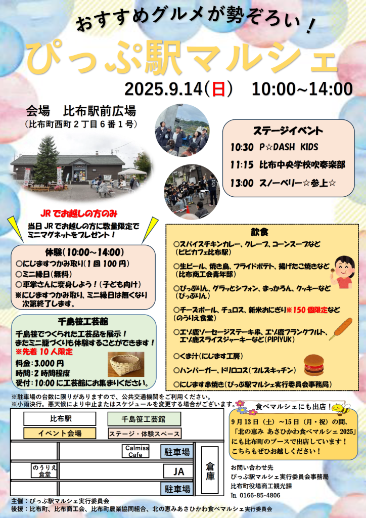 旭川市で行われる『北の恵み食べマルシェ2025』の開催にあわせて、比布町でも 『ぴっぷ駅マルシェ』を開催します!
